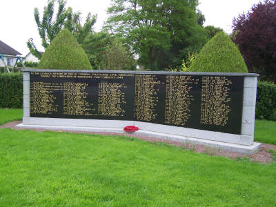 The search continued to Noyers Bocage, situated on the main N.175 road from Caen. Here, even though the village had been completely destroyed, Le Maire Monsieur Roland Heudier and the local community, gave their undivided support. An ideal piece of land was donated by the village, situated at the junction of two roads at the south end of the rebuilt commune of Noyers-Bocage, within easy walking distance of the lovely Church. Erection of the Memorial on this site started early 1990. Completion was achieved just before the 46th Anniversary of D-Day 6th June 1990