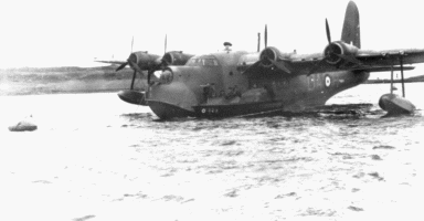the clouds was within 400 feet of the sea. The Sunderland thrashed